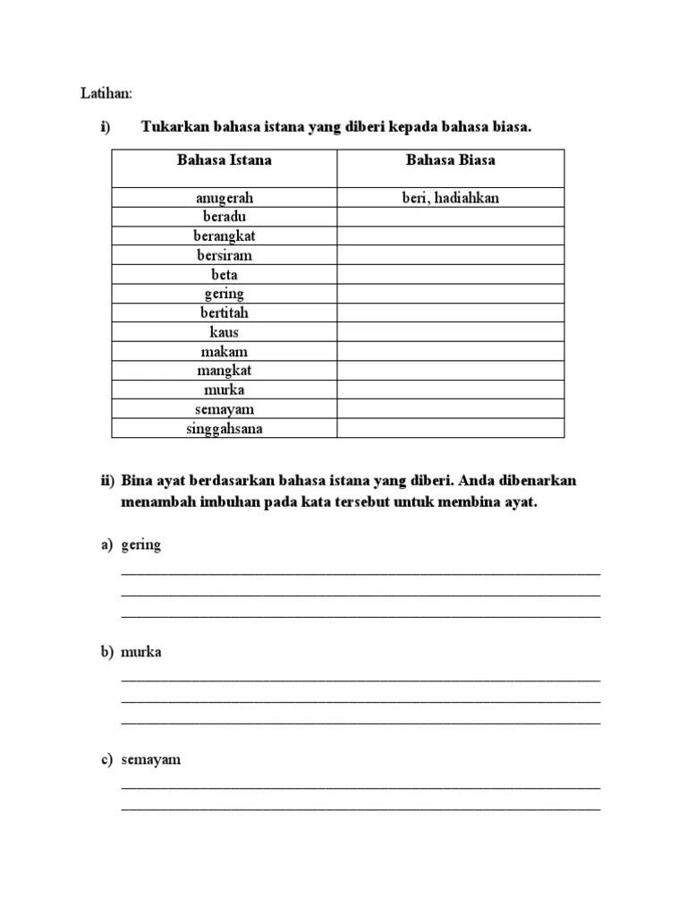 Semak senarai ayat dan contoh bahasa istana pt3 bahasa melayu bm seperti.